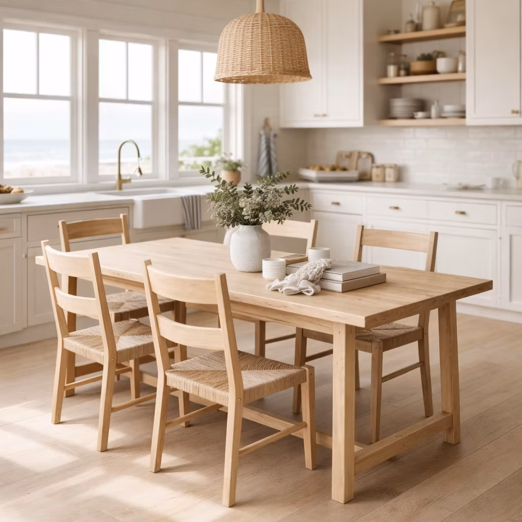 Passar perfekt i ett modernt lantkök, skandinaviskt hem eller öppna planlösningar med naturmaterial. Gör sig bäst i medellång längd. Kombinera med karmstolar för en balanserad modern helhet.
